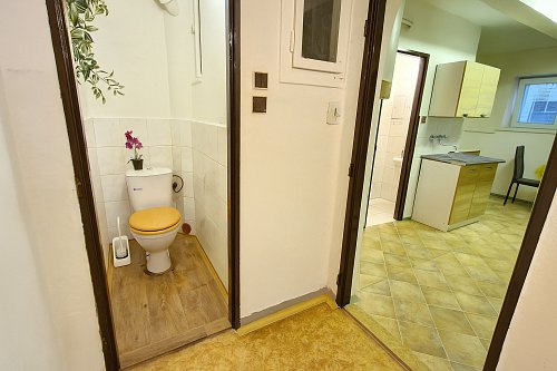 K bytu náleží sklepní kóje a je možné využívat i společný dvůr za domem, který slouží k posezení nebo odpočinku. Díky umístění v přízemí a bezbariérovému přístupu je byt vhodný pro starší osoby, které ocení snadný vstup bez překonávání schodů. Zároveň může dobře sloužit jako startovní bydlení pro mladý pár, který hledá prostor k úpravě podle svých představ.